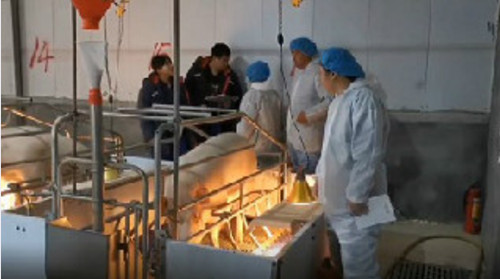 孟总带领公司专家团队实地视察核心场种母猪的生产情况(2)