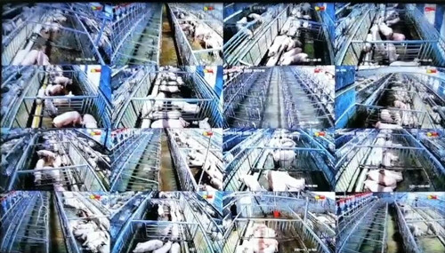 孟总在爱猪猪旗下行大农牧茂名元华柒号元种场实时监控室察看种母猪日常情况